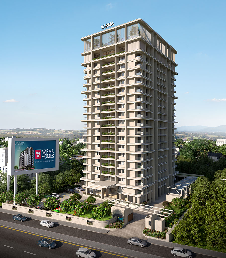 Cheranalloor, one of the most serene locations in Kochi, is opening gates to a promising and bustling lifestyle. With luxurious residential projects of well known builders coming up right at the spot along with infrastructural developments in and around Cheranalloor, the area is becoming a posh residential spot and one of the most sought after locations by real estate developers. A home here means you have a bustling lifestyle awaiting. With times changing, the mood and notes of luxury are changing too. Varma Homes brings to you, this new wave of luxury with its latest launch Queen's Gateway by Varma. In an area of 98.37 cents, this single tower with B+G+18 floors offer 96 units of 2, 3 & 4 BHK apartments. Here's your gateway to love, laughter and life immersed in luxury.